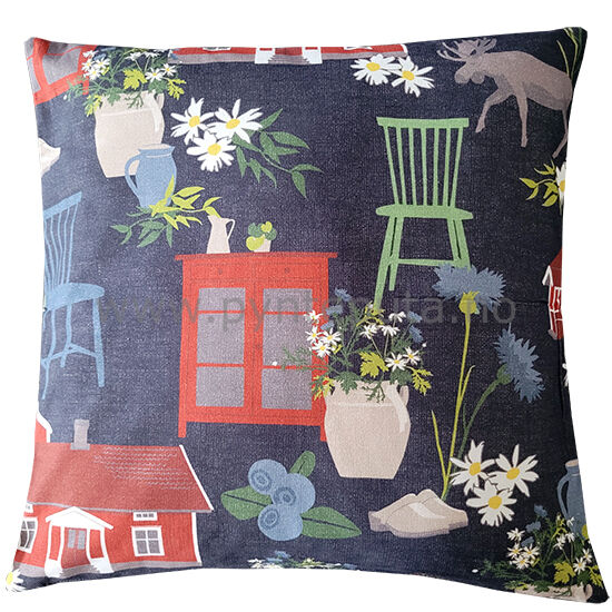 Bildene viser kun eksempel på hvordan puten kan se ut. Putetrekket går tre ganger i bredden på stoffet det er sydd av og motivene kan derfor variere. Vær også oppmerksom på at fargene kan variere noe på ulike dataskjermer, og at de faktiske farger avvike litt fra skjermbildet ditt.